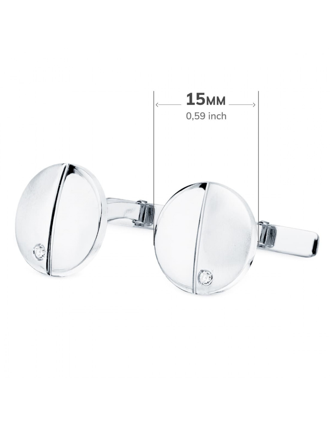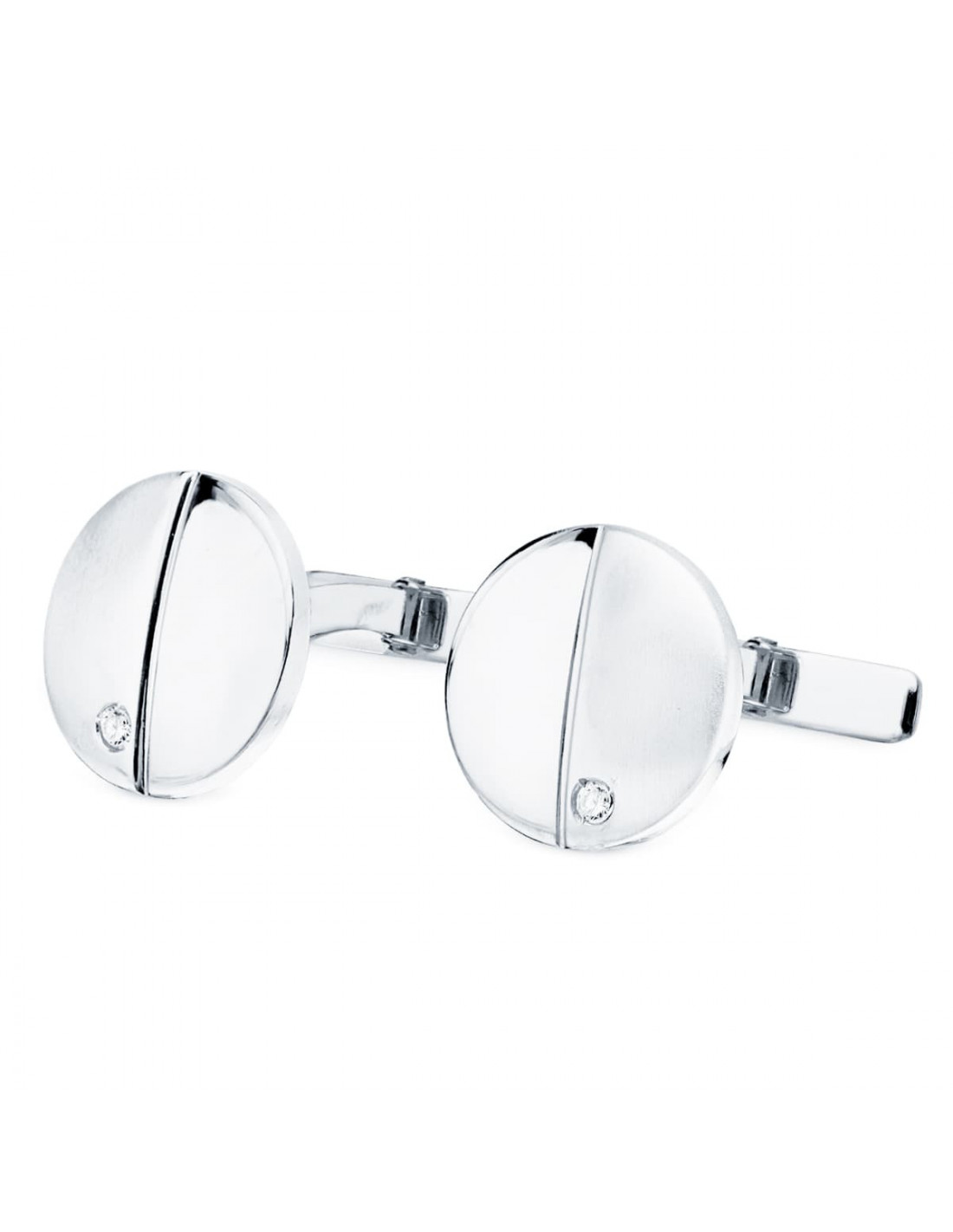 GEMELOS ORO BLANCO REDONDOS MATE BRILLO 15MM. CIRCONITAS CIERRE RÍGIDO OSCILANTE