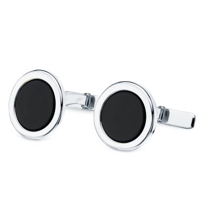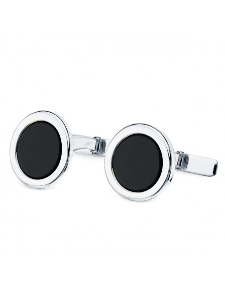 GEMELOS ORO BLANCO REDONDOS CON ONIX 15 MM. CIERRE RÍGIDO OSCILANT
