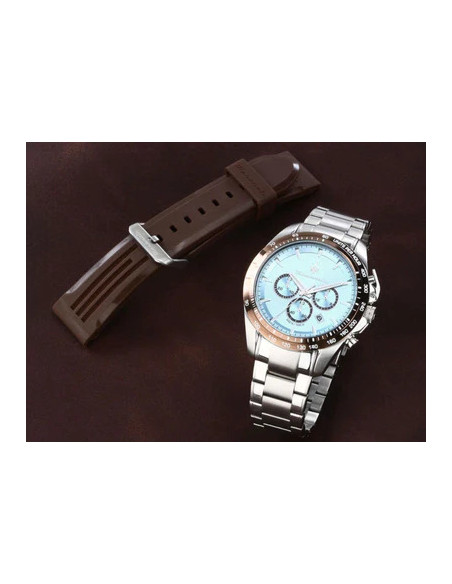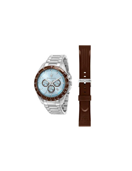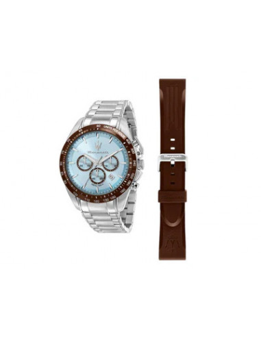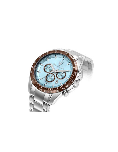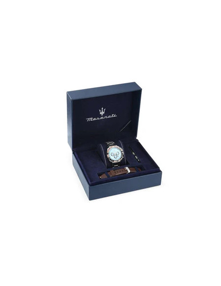 Descubre el reloj Maserati Traguardo 45mm con esfera azul claro, una pieza única para hombres que buscan estilo y elegancia. Con su diseño deportivo y sofisticado, este reloj se presenta con una caja de acero inoxidable y una correa de alta calidad que garantizan durabilidad y confort. Su esfera de color azul claro y los detalles en su diseño le otorgan un toque de distinción perfecto para cualquier ocasión. Ideal para quienes aprecian la calidad y el lujo de la marca Maserati.
