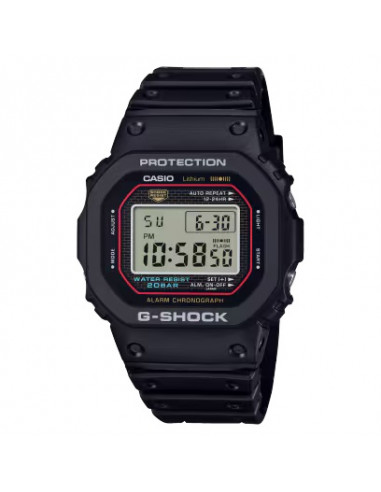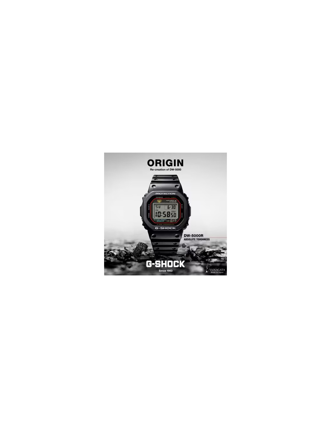 G-SHOCK marca otro hito. Celébralo con una vuelta a la visión original de la marca que cambió el juego, ahora 40 años después y actualizada con las tecnologías de vanguardia actuales. Al más puro estilo G-SHOCK, el DW-5000R se mantiene fiel a los orígenes de G-SHOCK y, al mismo tiempo, avanza con innovación. Heredando los conceptos de diseño del primer G-SHOCK de la historia, esta versión actualizada del original incorpora las últimas tecnologías para ofrecer la funcionalidad avanzada de hoy en día en una recreación sumamente fiel del icónico diseño original. Al igual que el primero, la caja es de acero inoxidable, y el diseño original de la correa también se reproduce hasta el más mínimo detalle: longitud, forma e incluso la posición de los hoyuelos. El tamaño de la caja se ha actualizado a 42,3 mm desde los 41,6 mm originales. En un guiño más a los inicios de G-SHOCK y a lo lejos que ha llegado, el bisel y la correa están hechos, como el original, de resina, pero ahora de base biológica.