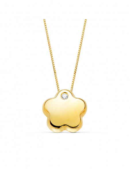 18K COLGANTE FLOR CIRCONITA CADENA 42CM