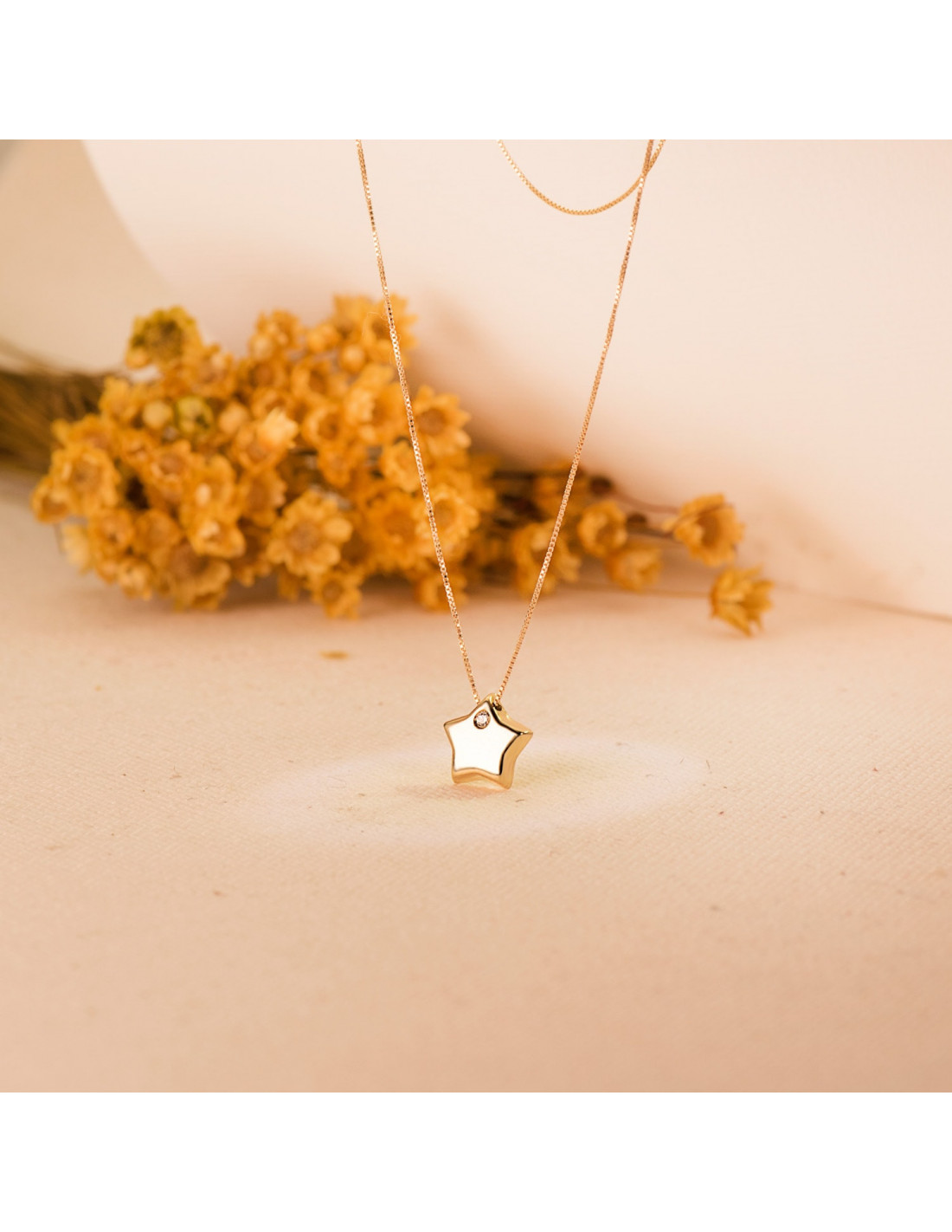 18K COLGANTE ESTRELLA CIRCONITA CADENA 42CM