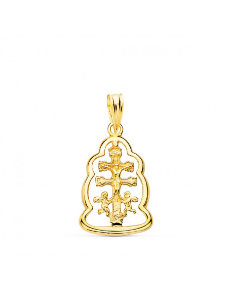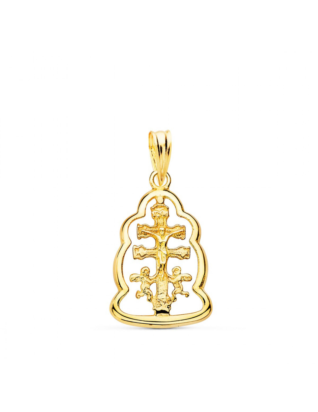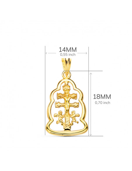 18K COLGANTE CRUZ DE CARAVACA ORLA 18X14 MM