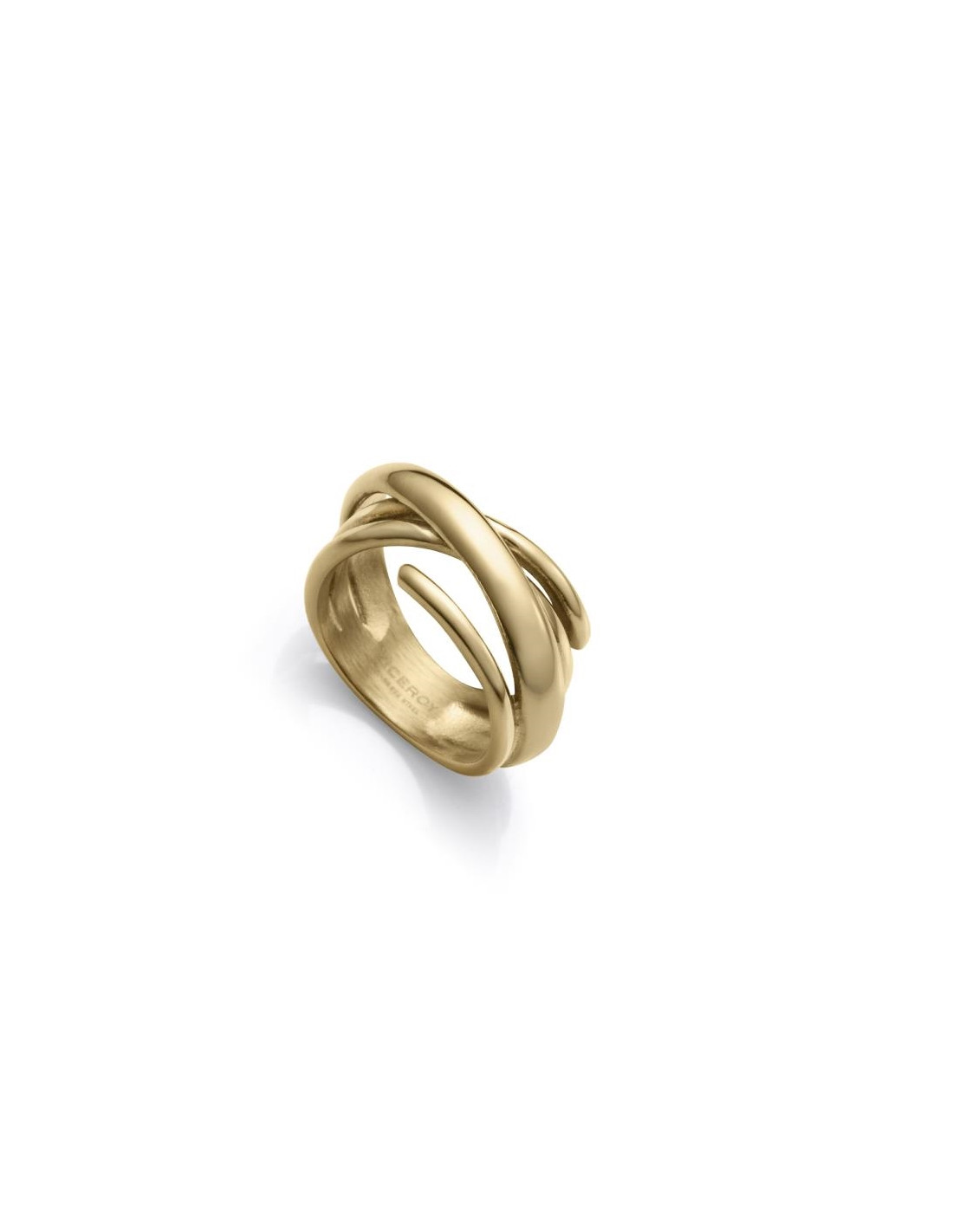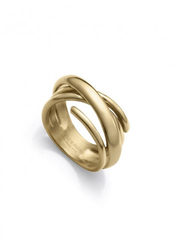 Anillo Viceroy para mujer fabricado en acero con un chapado en oro presenta un estilo cruzado abierto que le da un toque único y sofisticado. Su diseño minimalista pero llamativo lo convierte en el accesorio perfecto para quienes buscan un detalle distintivo en su estilo. Material: Acero dorado.