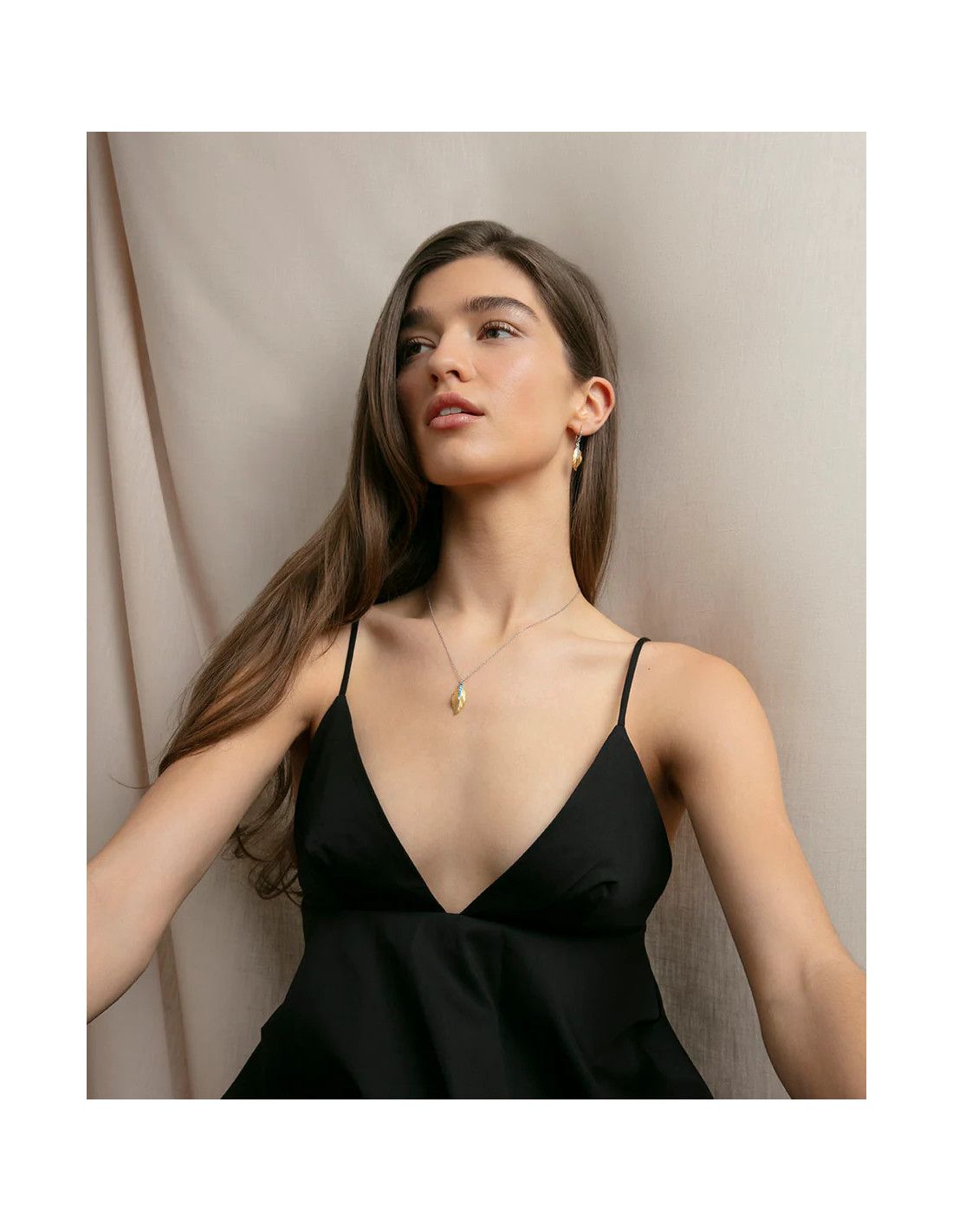 Con un diseño lleno de estilo y frescura, este collar de plata de primera ley con baño de oro y rodio presenta un colgante en forma de pluma adornado con una fila de circonitas verdes y azules. El contraste de colores aporta un toque vibrante y sofisticado, ideal para realzar cualquier look. Con un largo de 42 cm más 3 cm de extensión, este collar es una joya que combina elegancia y naturaleza, perfecta para quienes buscan un accesorio único y lleno de personalidad.