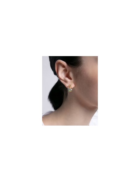 Prepárate para lucir sofisticada y femenina con estos pendientes dorados embellecidos con circonitas de colores, una joya que no pasará desapercibida en ningún momento. El conjunto rezuma una belleza con un toque exótico que habla por sí sola. Diámetro: 1,5 cm.