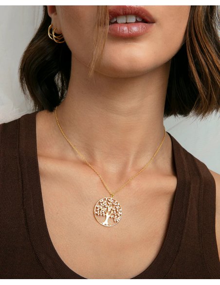 Este collar de plata de primera ley con baño de oro es mucho más que una joya: es un símbolo de fuerza, crecimiento y conexión. Su colgante en forma de árbol de la vida, adornado con circonitas blancas, aporta un brillo delicado que ilumina cualquier look. Con un largo de 42 cm más 3 cm de extensión, se adapta perfectamente a tu estilo, ya sea para el día a día o para ocasiones especiales. Una pieza que combina elegancia y significado, diseñada por Viceroy para acompañarte en cada paso del camino.