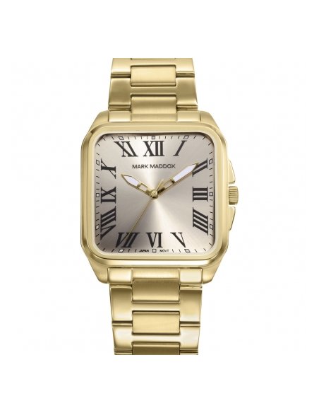Brillante y elegante, este reloj de hombre combina una caja y brazalete de acero con baño Ip dorado con una esfera dorada marcada por números romanos, ofreciendo un estilo clásico con un toque moderno. Sus tres agujas horarias en color dorado y el cristal mineral aseguran precisión y durabilidad, convirtiéndolo en un accesorio sofisticado que realza cualquier look.