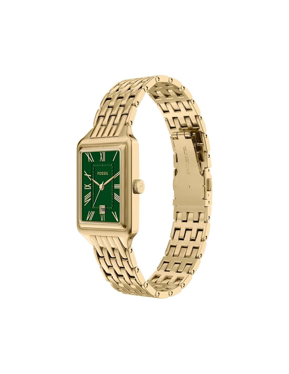 Su caja de acero inoxidable de 23 mm en acabado dorado aporta calidez y estilo, mientras que la esfera verde ofrece un toque de frescura y personalidad. El brazalete de acero inoxidable de 12 mm de ancho asegura comodidad y un ajuste perfecto en la muñeca.