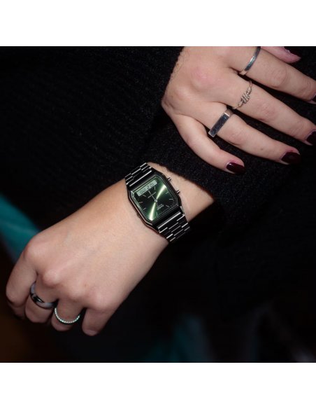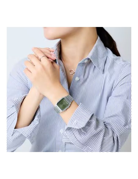 La clásica combinación analógica-digital en nuevos tonos. Con una esfera iridiscente que aporta un toque sutil de color y elegancia a un diseño icónico. Cuenta con resistencia al agua en las tareas diarias y con funciones prácticas, como cronómetro, alarma y mucho más.