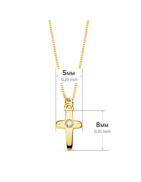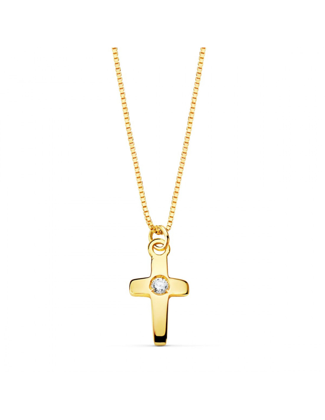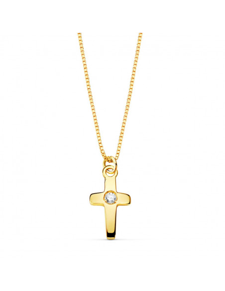 18K GARGANTILLA CRUZ 8X5MM 1 DIAMANTE 0.015QT. CADENA VENECIANA 45CM G-VS2