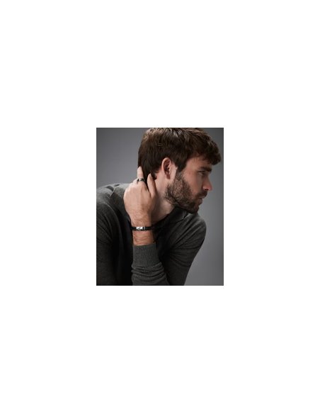 Una pulsera que combina modernidad y elegancia en un diseño masculino y sofisticado. Fabricada en acero con detalles de piel negra y un acabado en esmalte negro, esta pieza ofrece un contraste sutil pero impactante, ideal para el hombre que busca un accesorio discreto pero lleno de carácter. Con un largo de 21,5 cm, se adapta cómodamente a la muñeca, convirtiéndola en un complemento versátil para cualquier ocasión. Una joya pensada para quienes aprecian el diseño contemporáneo con un toque de distinción y sofisticación.