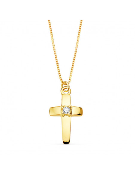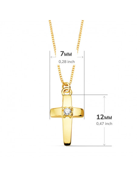 18K GARGANTILLA CRUZ 12X7 MM 1 DIAMANTE 0.015QT. CADENA VENECIANA 45CM G-VS2