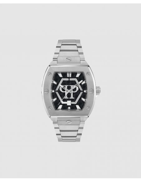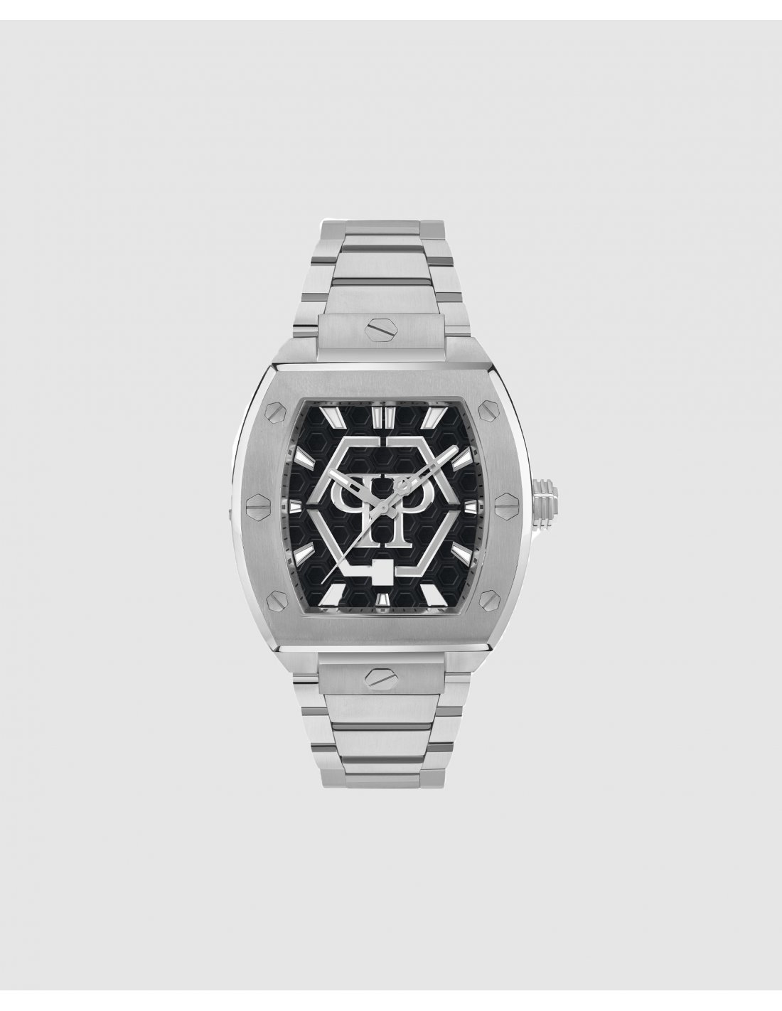 Reloj de hombre The hexagon phantom PWPUA0725 de acero y correa plateada/gris. Reloj de hombre Philipp Plein con caja de acero inoxidable plateado de 44 mm, esfera de acero inoxidable plateado y brazalete en acero inoxidable plateado y movimiento de cuarzo de 3 agujas (Myota 2115). El Hexagon Phantom redefine la elegancia contemporánea con su icónica forma tonel, detalles modernos y una estética audaz que eleva cualquier look.