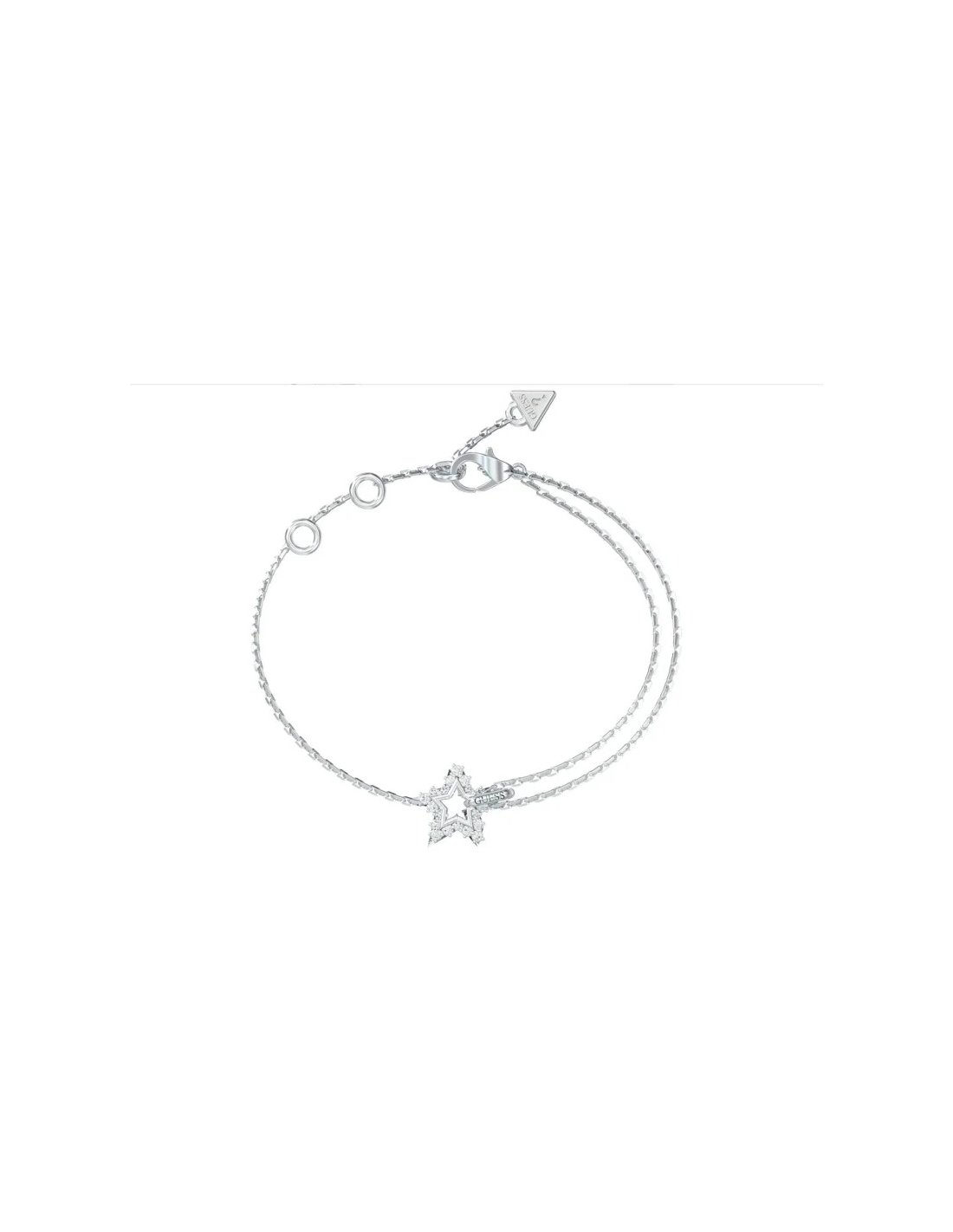 Pulsera Guess de mujer fabricada en acero inoxidable diseñada para aportar un toque de sofisticación y feminidad a cualquier look que incorpora un delicado charm en forma de estrella decorada con pequeños cristales brillantes que aportan luz y elegancia sin sobrecargar el diseño. Una joya versátil y atemporal que combina perfectamente con otros accesorios dorados, ideal tanto para el día a día como para ocasiones especiales.