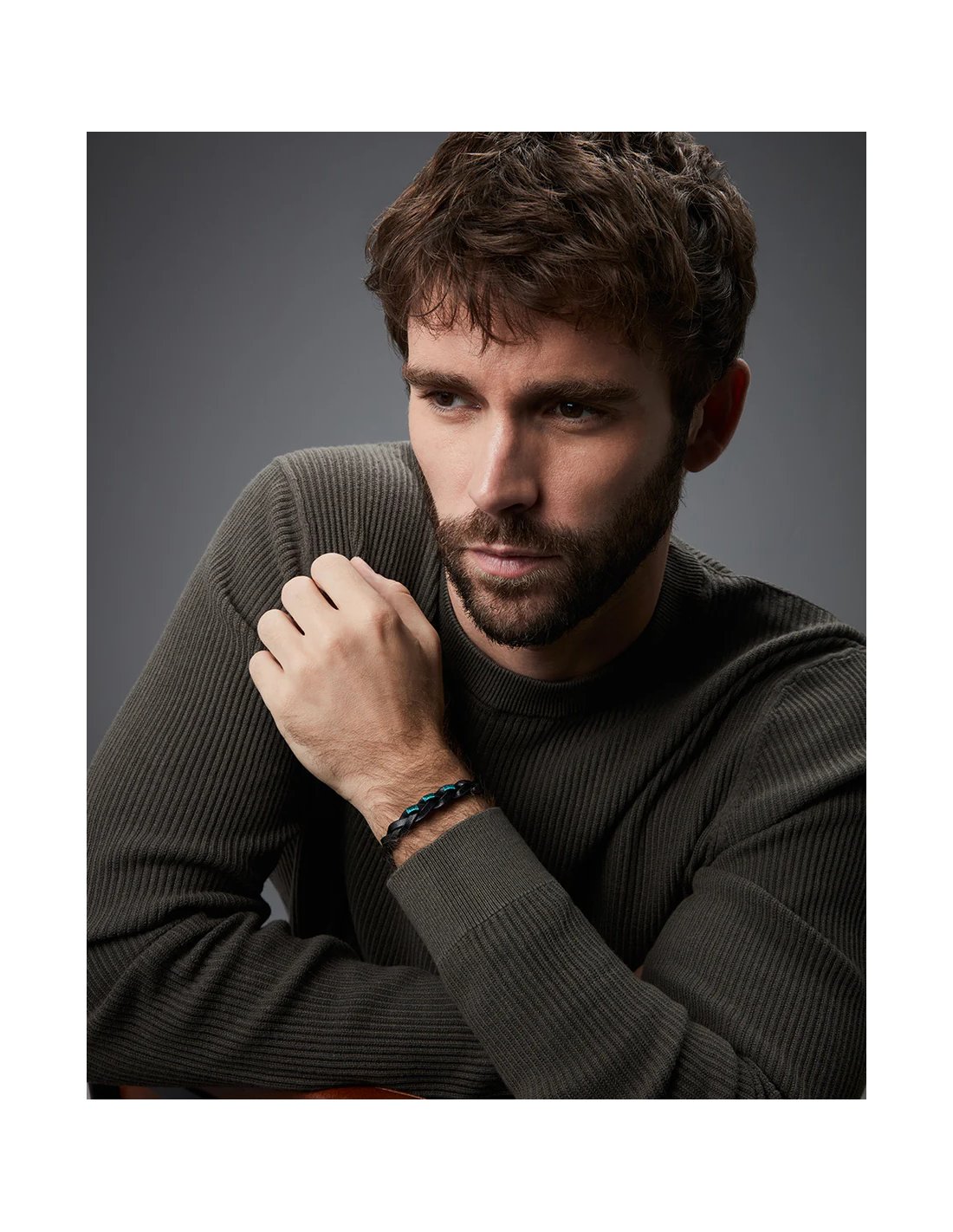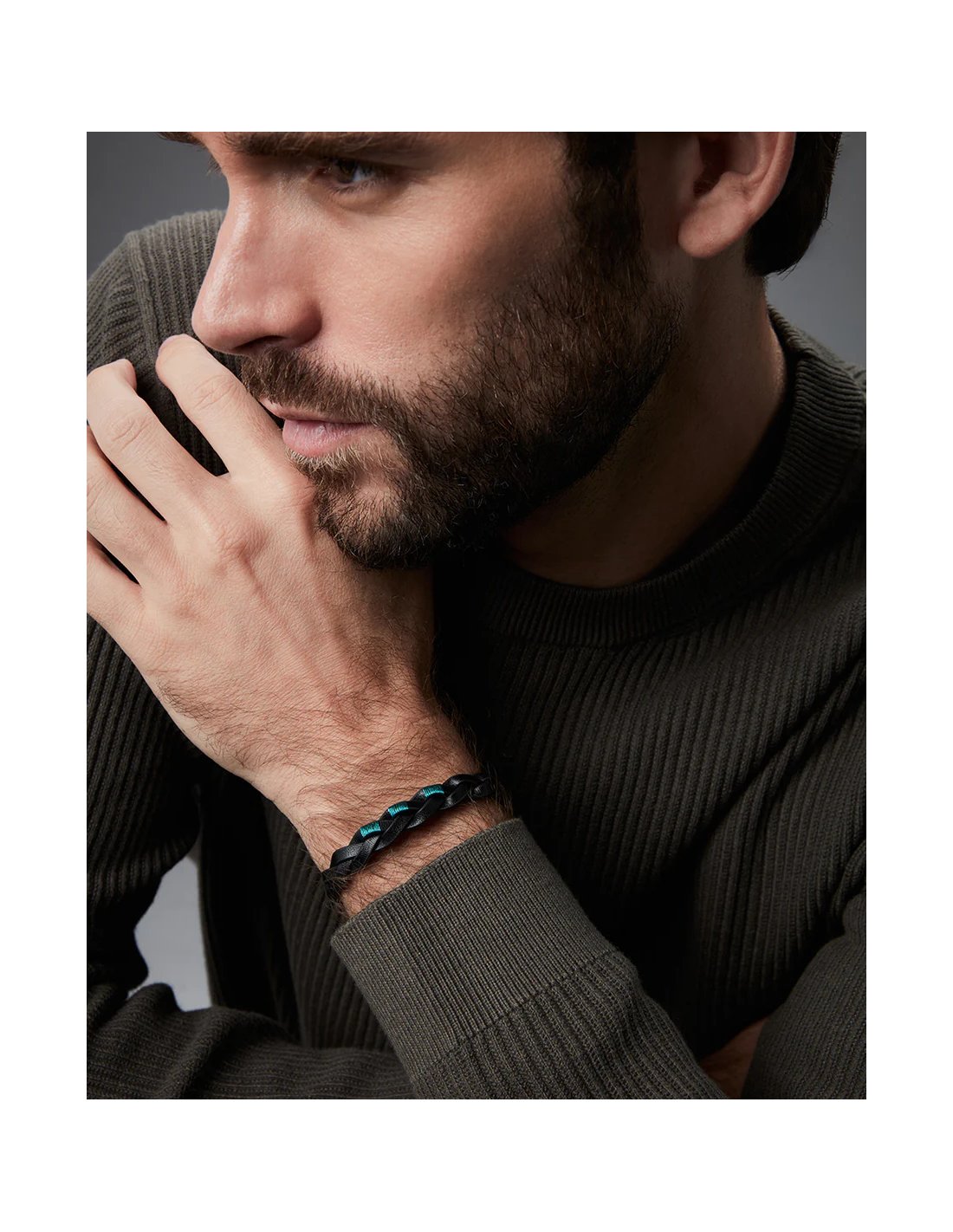 Una pulsera que combina robustez y frescura en un diseño único. Fabricada en acero y piel negra trenzada, esta pieza se adorna con un cordón verde que añade un toque de color vibrante y contemporáneo. El contraste entre la piel negra y el cordón verde crea una combinación audaz, perfecta para realzar cualquier look con un estilo moderno y masculino. Con un largo de 21,5 cm, se ajusta cómodamente a la muñeca, convirtiéndola en un accesorio ideal tanto para el día a día como para ocasiones especiales. Una joya pensada para hombres que buscan un detalle distintivo con carácter y originalidad.