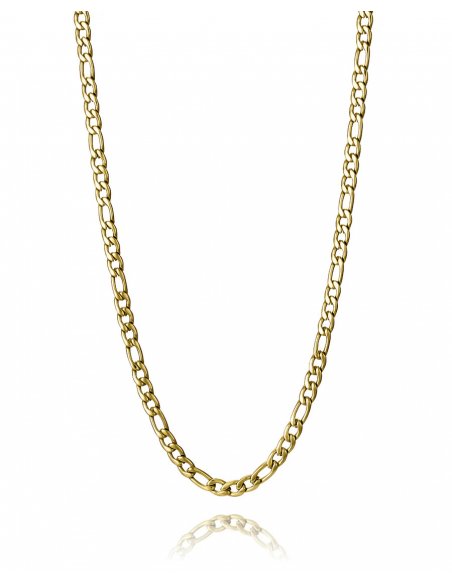 Un collar que exuda sofisticación y estilo moderno. Fabricado en acero con un acabado IP dorado, presenta una cadena de diseño elegante y atemporal, perfecta para añadir un toque de lujo a cualquier look. Con un largo de 55 cm más 5 cm de extensión, se adapta cómodamente a diferentes estilos y escotes, ofreciendo versatilidad y comodidad. Ideal para hombres que buscan un accesorio que combine distinción y frescura, este collar es perfecto tanto para el día a día como para ocasiones más especiales, realzando el estilo con un toque de brillo sutil.