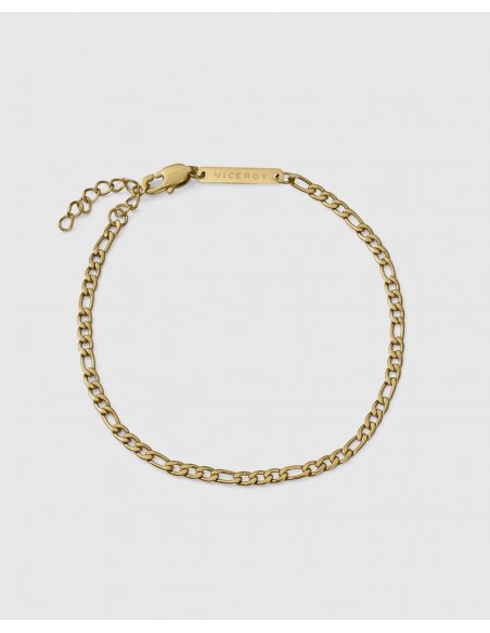 Una pulsera que combina la robustez del acero con un toque de lujo moderno. Fabricada en acero con un acabado IP dorado, presenta una cadena de diseño elegante que añade sofisticación y estilo al look. Con un largo de 19,5 cm más 3 cm de extensión, se adapta cómodamente a la muñeca, ofreciendo un ajuste perfecto y versatilidad. Ideal para hombres que buscan un accesorio con carácter y distinción, esta pulsera es perfecta tanto para ocasiones cotidianas como para eventos más formales, aportando un toque de brillo y sofisticación en cada detalle.