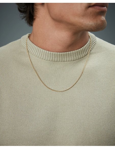 Un collar que destaca por su elegancia y estilo contemporáneo. Fabricado en acero con un acabado IP dorado, presenta una cadena robusta y sofisticada que aporta un toque de lujo y distinción. Con un largo de 55 cm más 5 cm de extensión, se adapta cómodamente a diferentes estilos y escotes, brindando versatilidad y confort. Perfecto para hombres que buscan un accesorio que combine durabilidad y sofisticación, este collar es ideal tanto para el día a día como para ocasiones especiales, añadiendo un toque de brillo sutil y moderno a cualquier look.