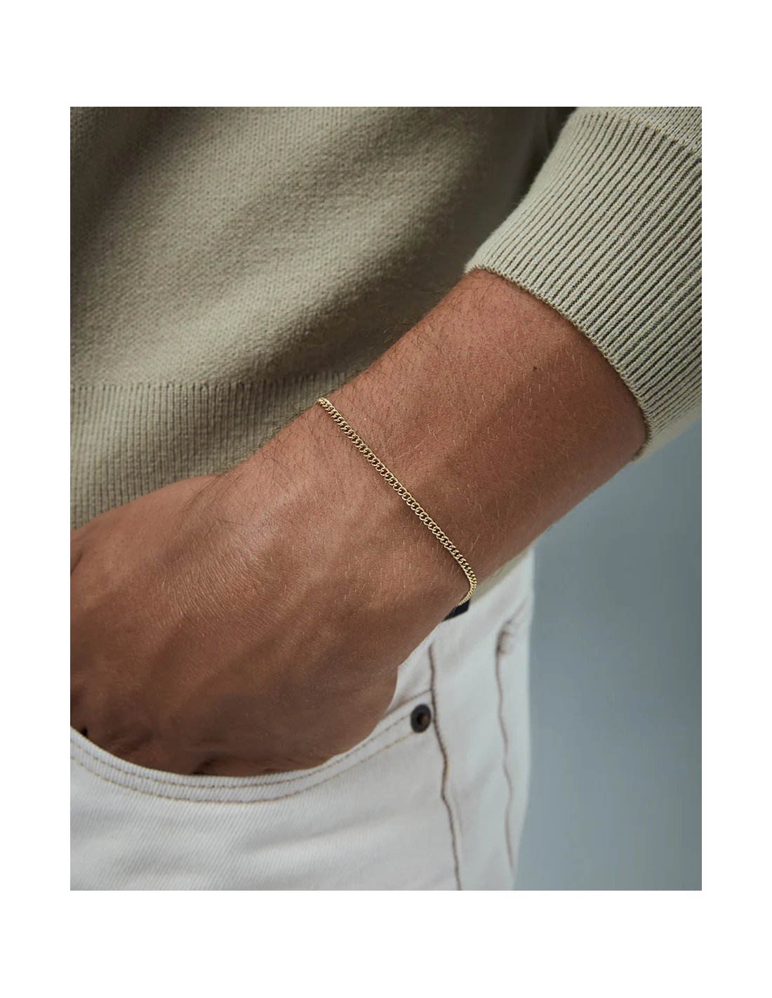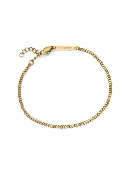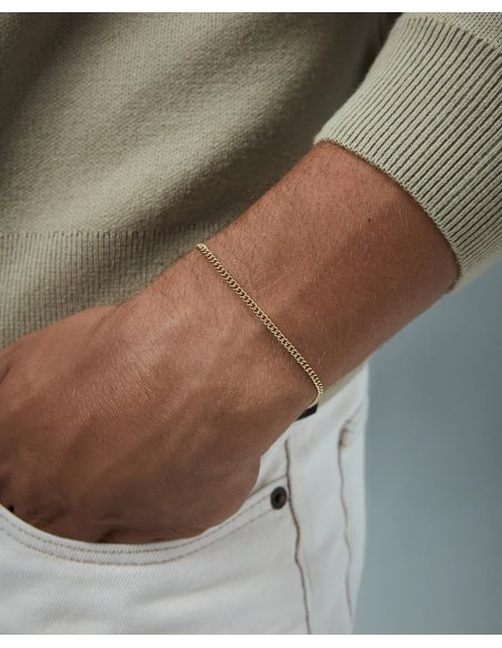 Una pulsera que irradia elegancia y fuerza, ideal para el hombre moderno. Fabricada en acero con acabado IP dorado, presenta una cadena robusta que aporta un toque de lujo y distinción. Con un largo de 19,5 cm más 3 cm de extensión, se ajusta cómodamente a la muñeca, asegurando un fit perfecto. Su diseño versátil la convierte en un accesorio ideal para cualquier ocasión, ya sea casual o más formal, añadiendo un toque de sofisticación y estilo. Una joya pensada para hombres que buscan un detalle único y lleno de carácter.