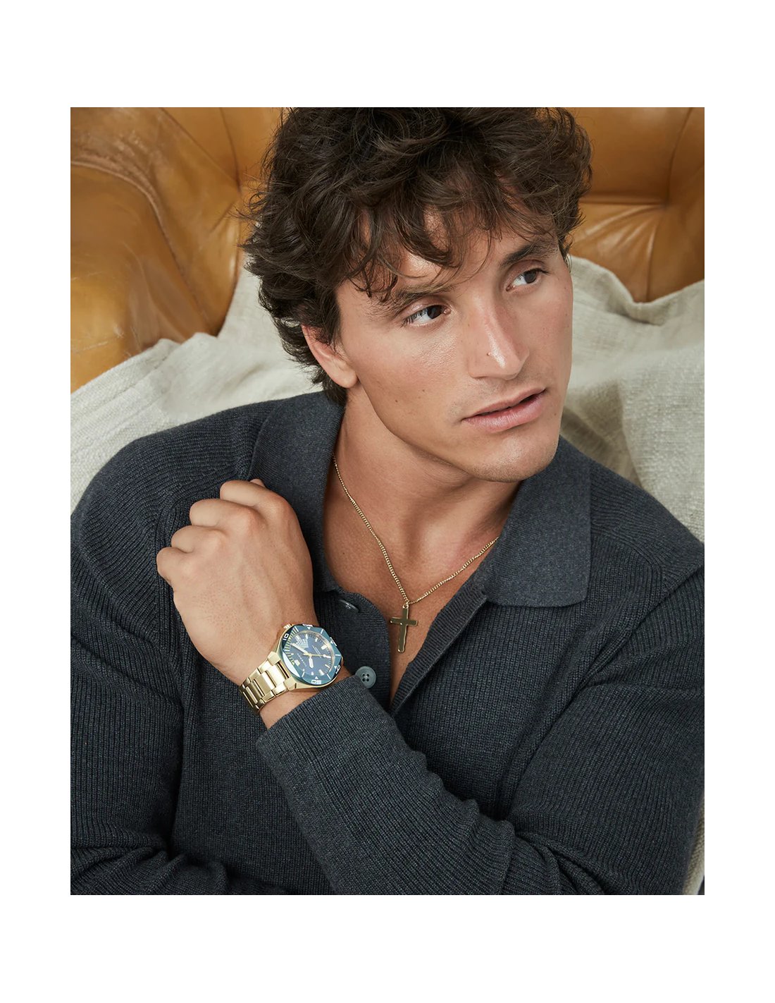 Un collar que combina fuerza y espiritualidad con un diseño moderno y sofisticado. Fabricado en acero con un acabado IP dorado, este collar presenta un colgante con cruz, símbolo de fe y protección. El acabado dorado añade un toque de lujo y distinción, mientras que la cadena robusta aporta un aire contemporáneo. Con un largo de 55 cm más 5 cm de extensión, se adapta perfectamente a diferentes estilos y escotes. Ideal para hombres que buscan un accesorio con un significado profundo y una estética elegante, este collar es perfecto para cualquier ocasión.