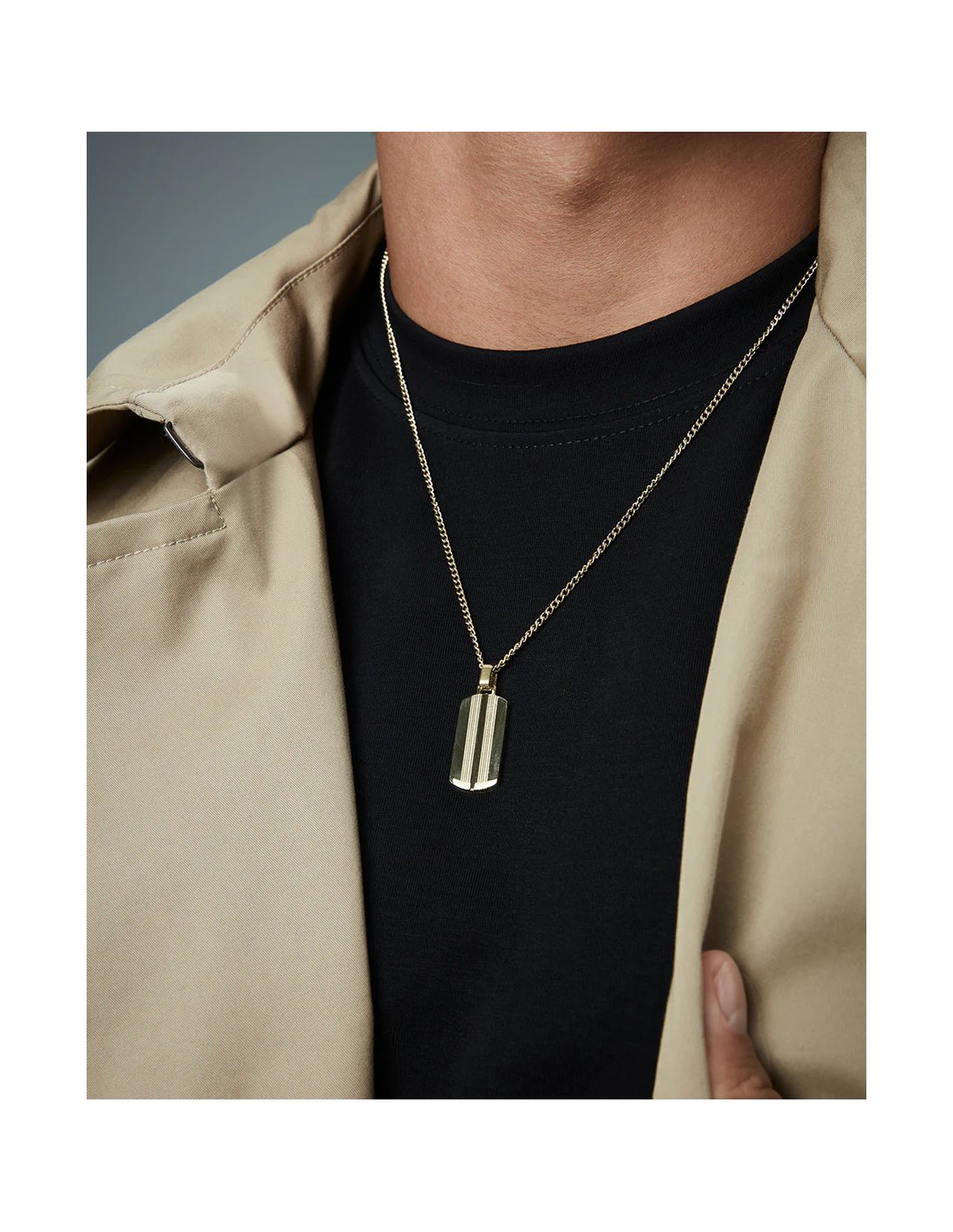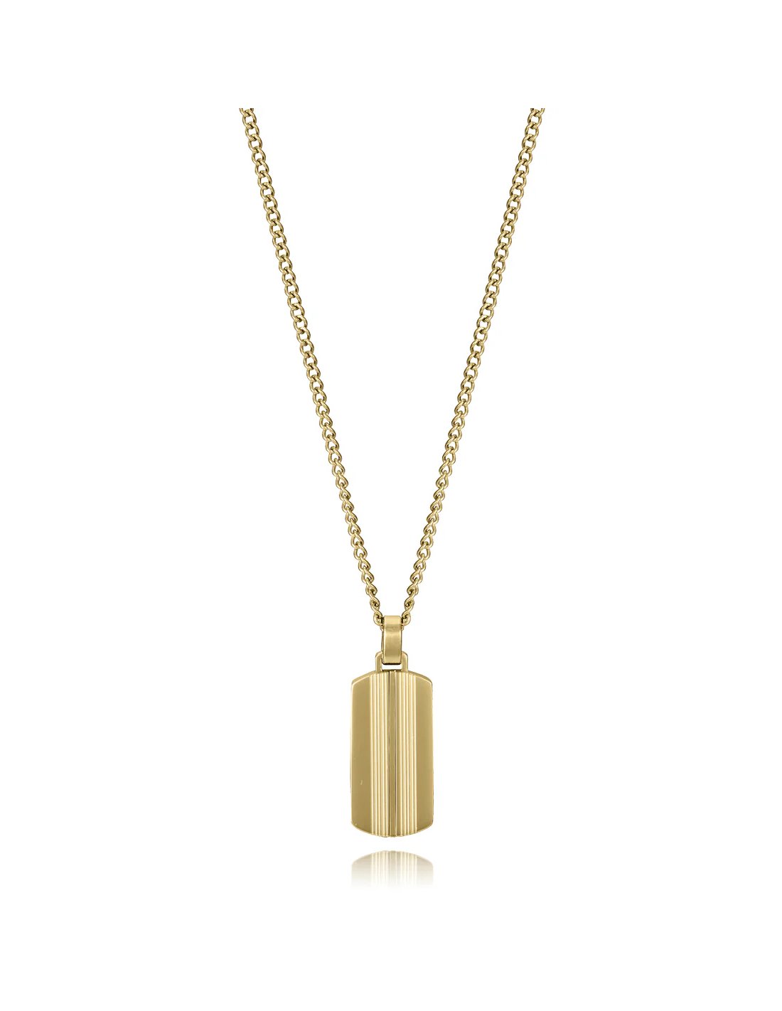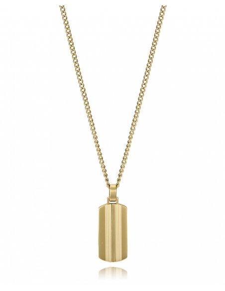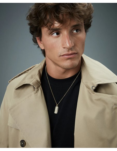 Un collar que irradia elegancia y masculinidad con un diseño moderno y sofisticado. Fabricado en acero con acabado IP dorado, presenta un colgante con placa, añadiendo un toque de distinción y versatilidad. El acabado dorado aporta calidez y lujo, mientras que la cadena robusta asegura comodidad y estilo. Con un largo de 55 cm más 5 cm de extensión, se adapta fácilmente a diferentes estilos y escotes, convirtiéndolo en un accesorio ideal tanto para el día a día como para ocasiones especiales. Un collar perfecto para hombres que buscan una pieza que combine estilo y carácter.
