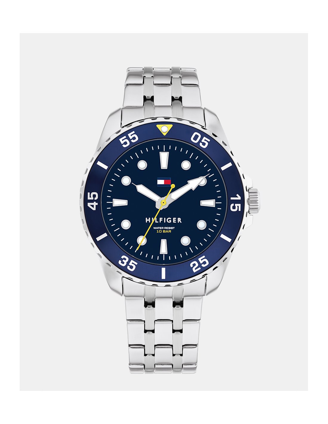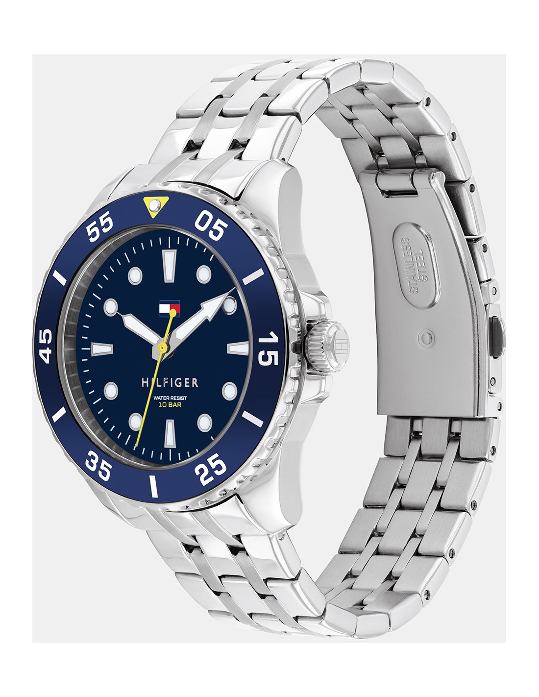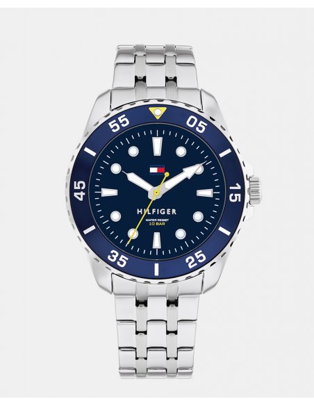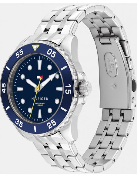 Reloj de cuarzo 3 agujas con caja en acero inoxidable .Esfera azul.Brazalete de eslabones en acero inoxidable.