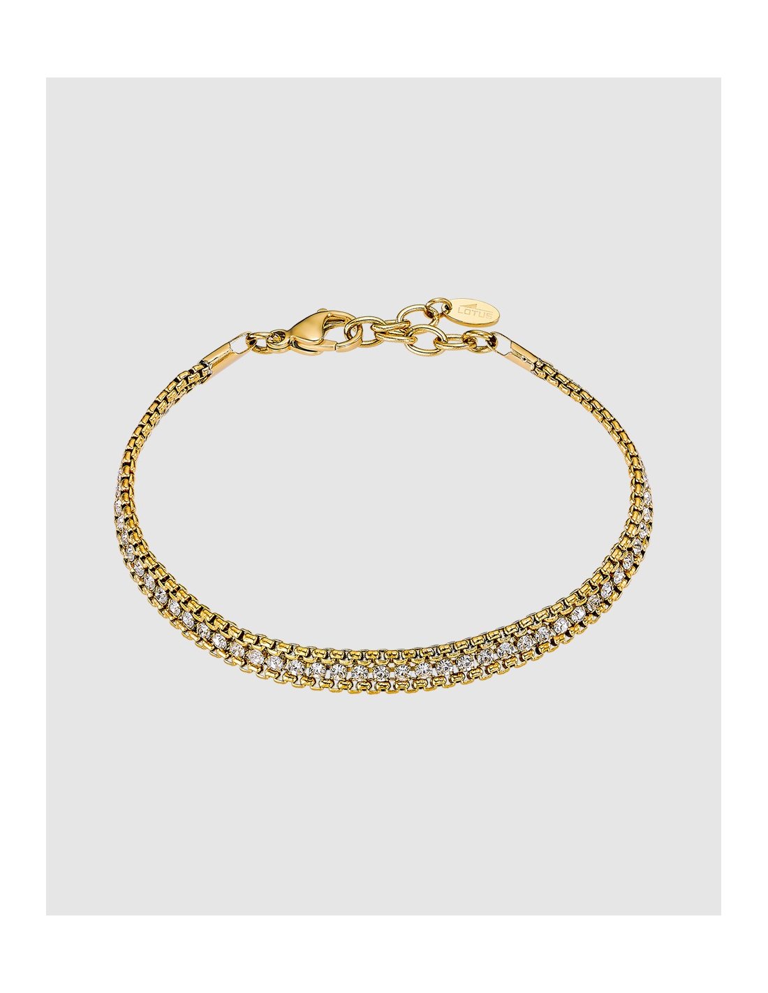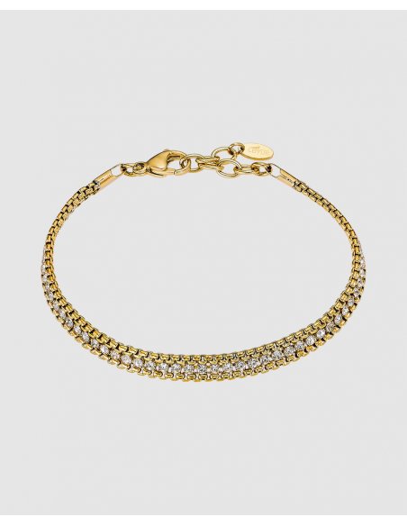 Pulsera Lotus Style LS2568-2/2 mujer. Diseñada en acero inoxidable 316l resistente de alta calidad. De la colección Bliss, compuesta por joyas modernas con un toque de brillo y mezcla de texturas. La combinación de acero con otros materiales da lugar a la colección Lotus Style, joyas con un estilo urbano y atrevido. Longitud de la pieza: 19.00 mm