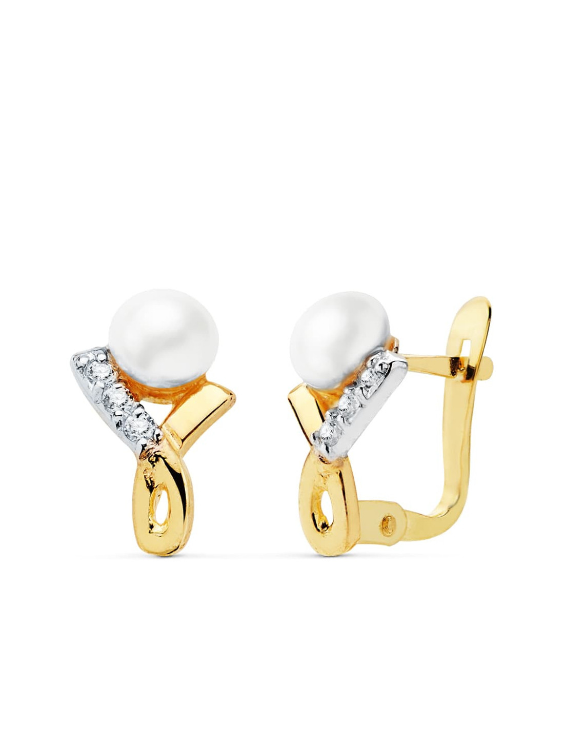 18K PENDIENTES BICOLOR CIRCONITAS 11X7 MM