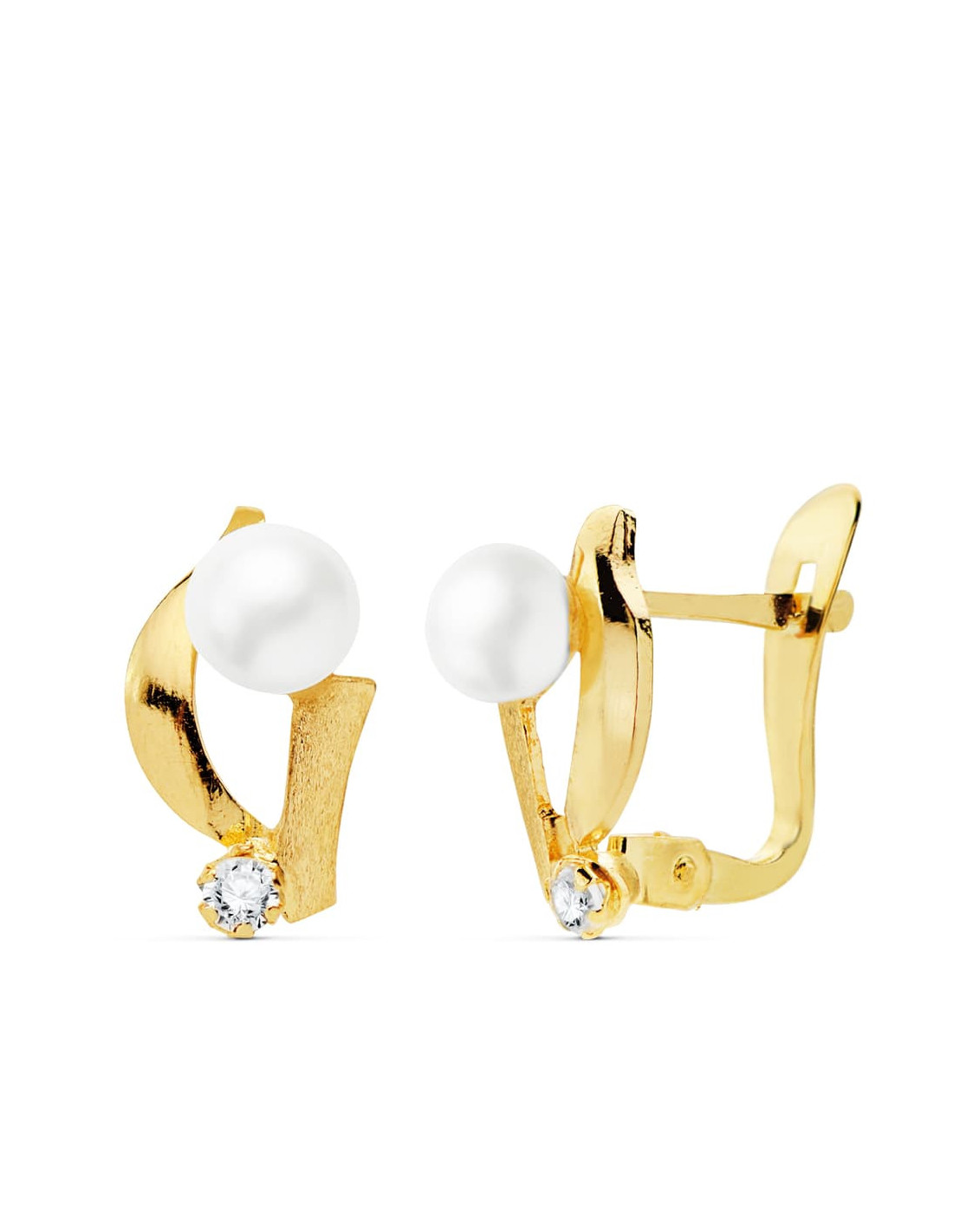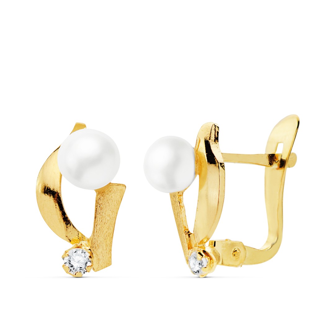 18K PENDIENTES CIRCONITAS 11X7 MM PERLAS 4 MM