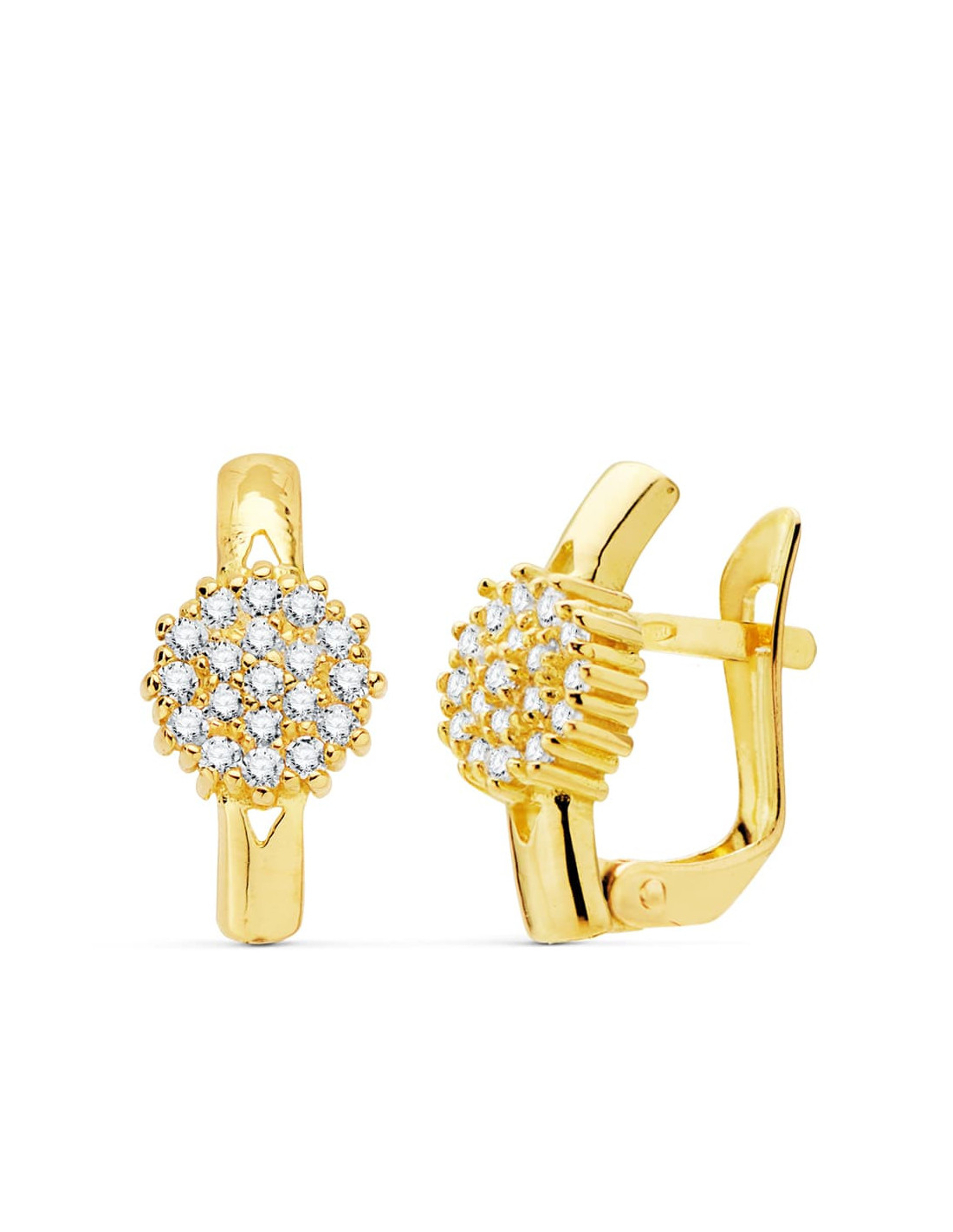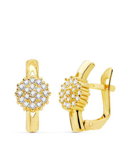 18K PENDIENTES ORO AMARILLO CUAJO CIRCONITAS 6X6 MM CIERRE CATALAN