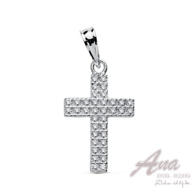 CRUZ ORO BLANCO 9KTES CIRCONITAS 20 X 12 MM