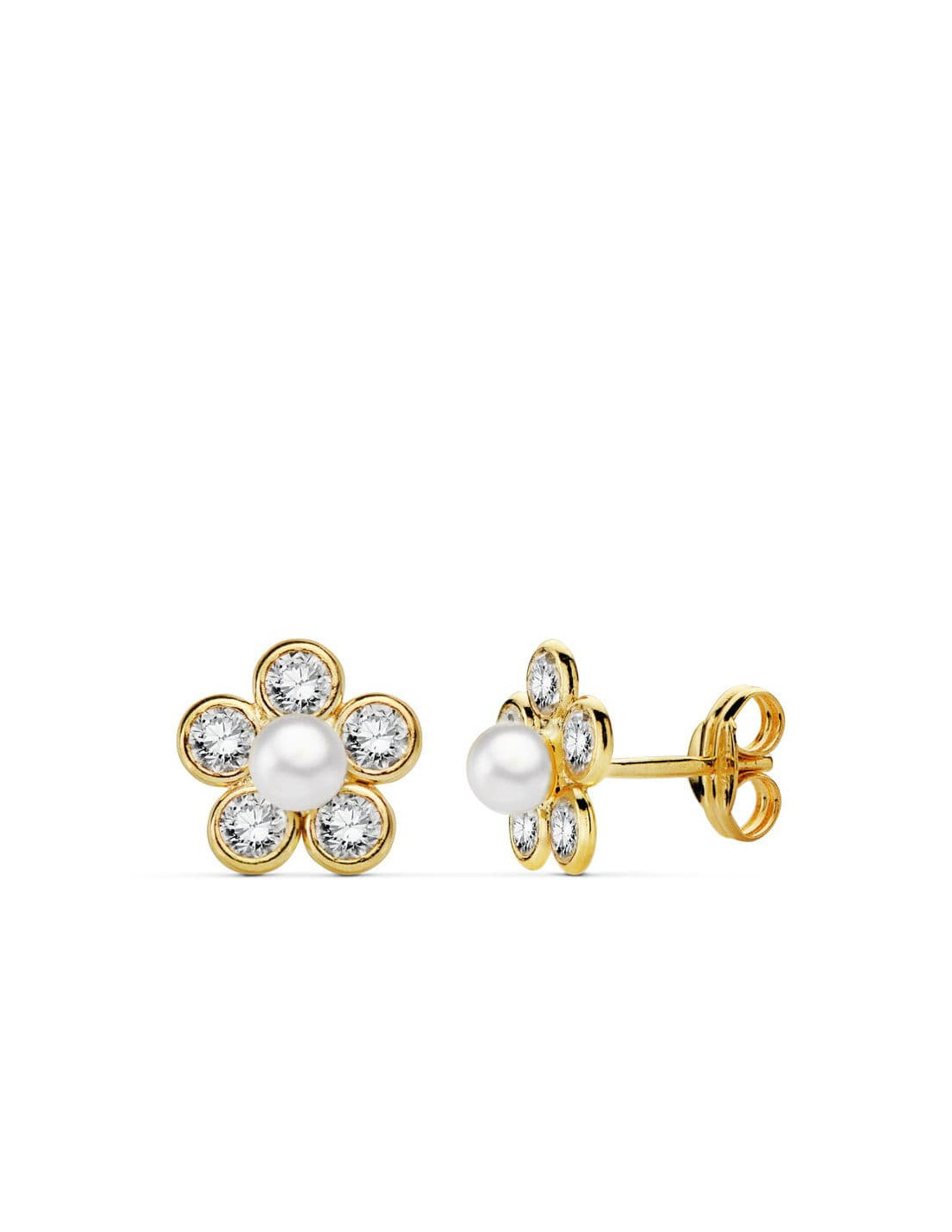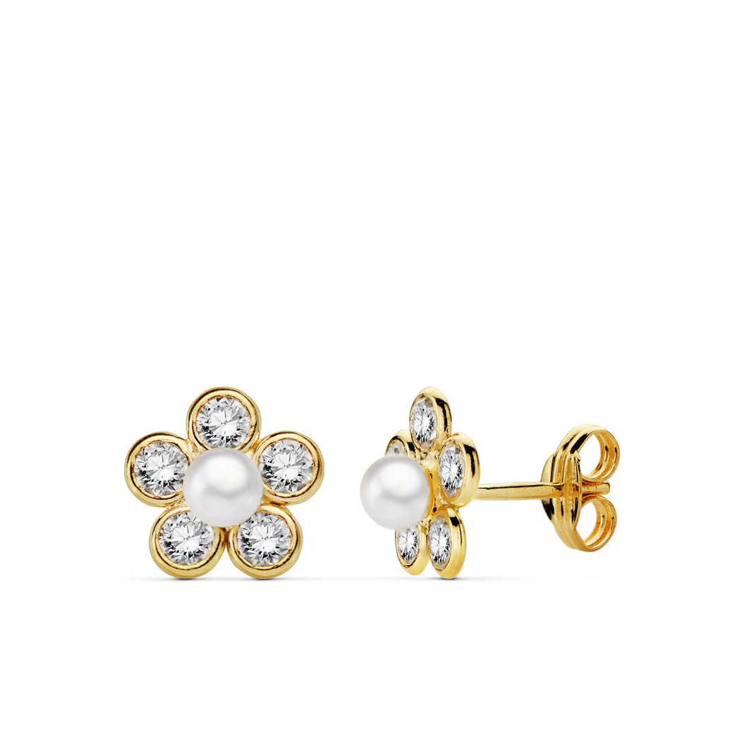 18K PENDIENTES FLOR CIRCONITAS 9X9 MM