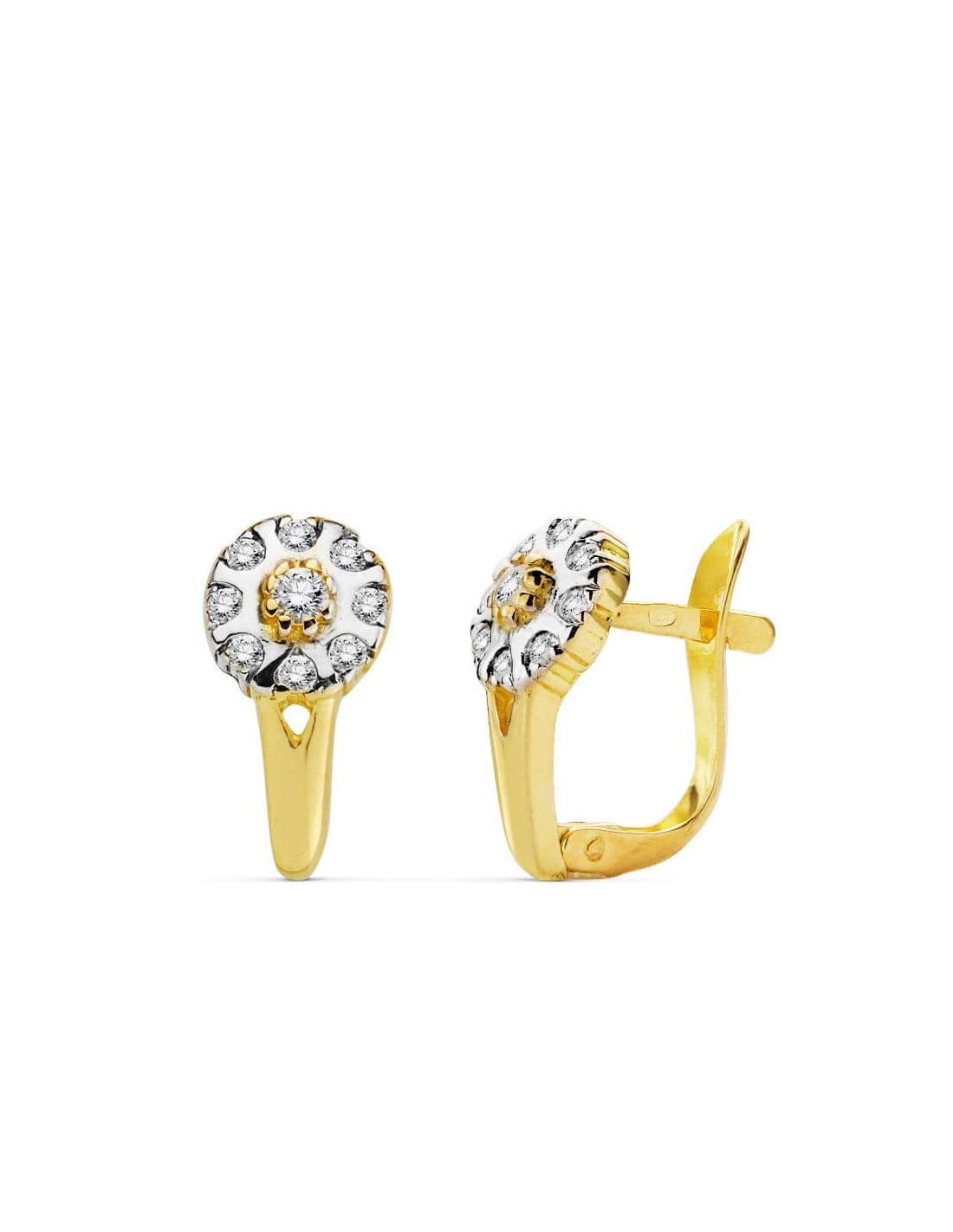 18K PENDIENTES BICOLOR CIRCONITAS 12X6 MM