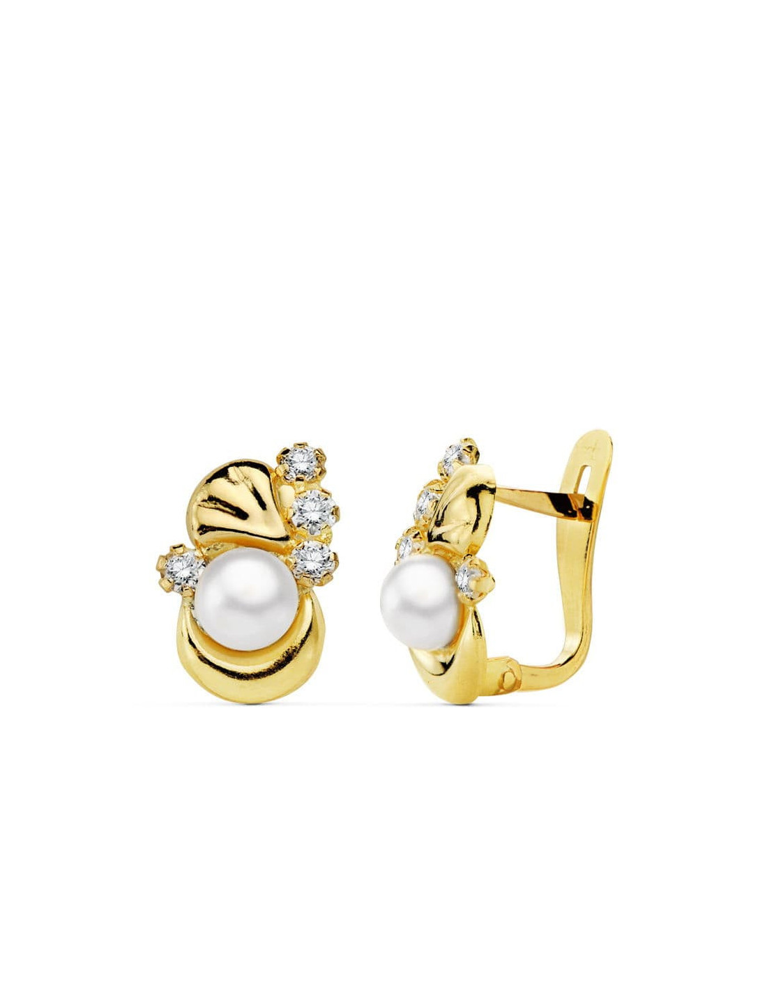 PENDIENTES ORO PERLAS Y CIRCONITAS. 12X8 MM