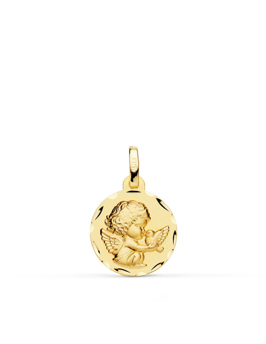 18K MEDALLA ANGELITO BURLON Y PALOMA 14 MM