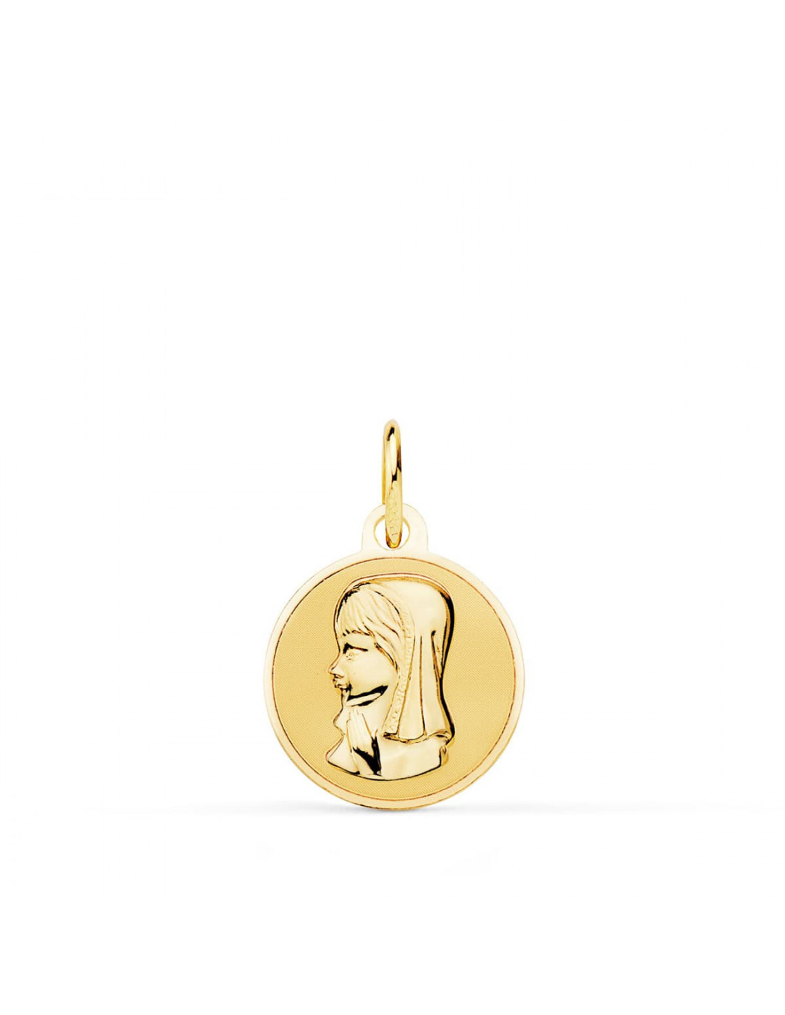 18K MEDALLA ORO AMARILLO VIRGEN NIÑA EN BRILLO 14 MM