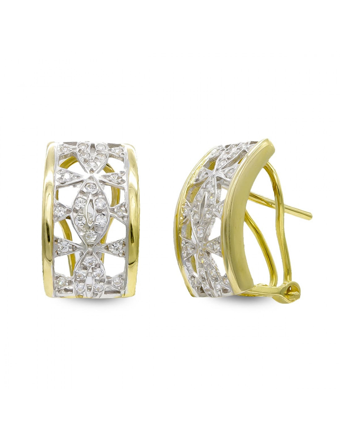 18K PENDIENTES ORO BICOLOR CON CIRCONITAS CIERRE OMEGA