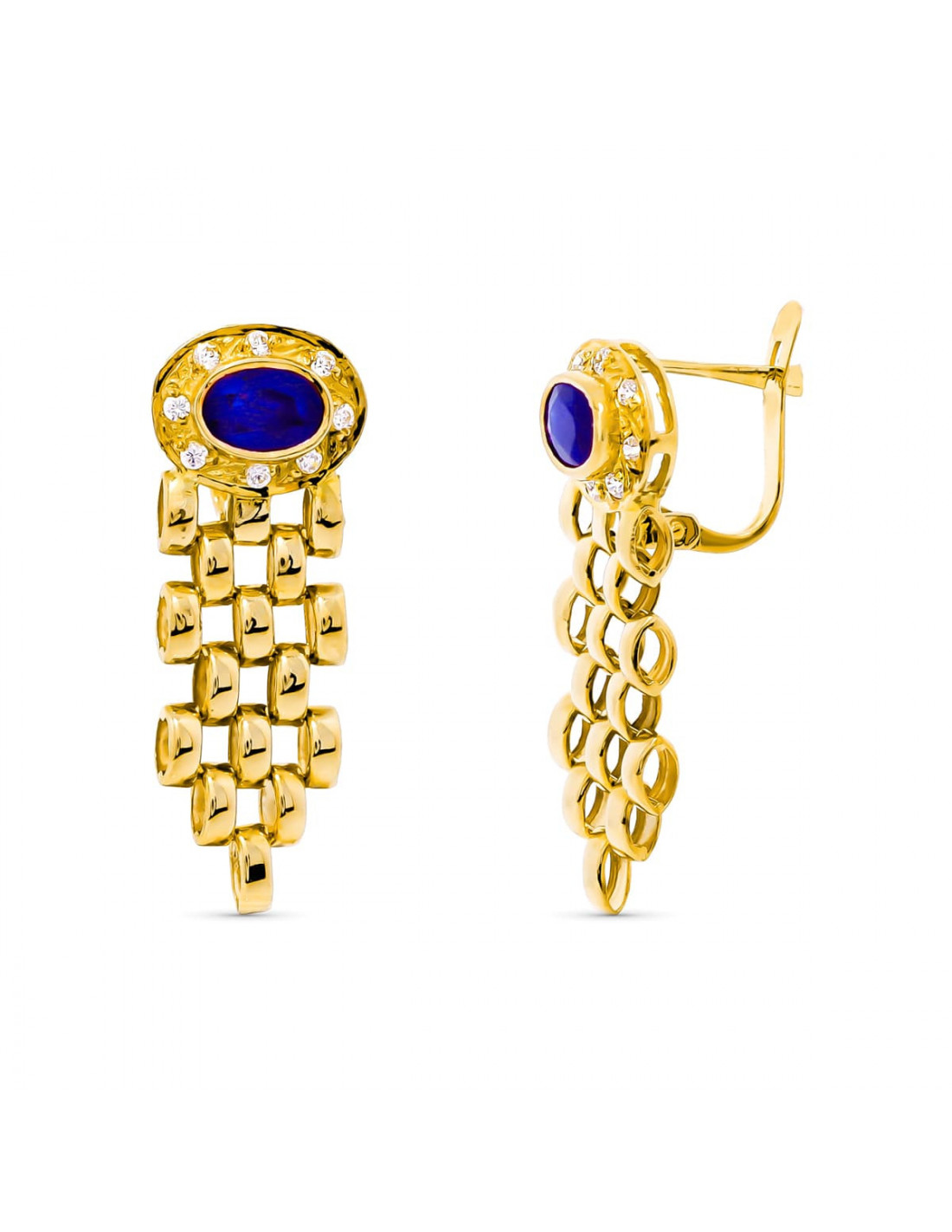 18K PENDIENTES ORO AMARILLO PANTER Y PIEDRA ZAFIRO 6X4 MM