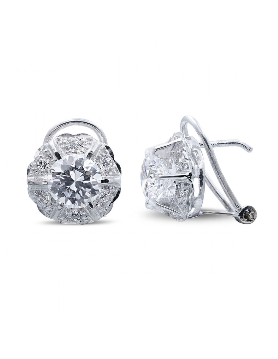 18K PENDIENTES ORO BLANCO CON CIRCONITAS EN GARRAS CIERRE OMEGA