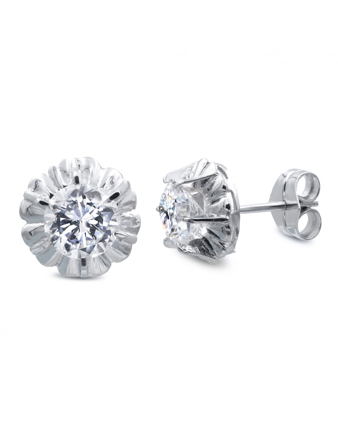 18K PENDIENTES ORO BLANCO CON CIRCONITAS EN GARRAS CIERRE PRESION