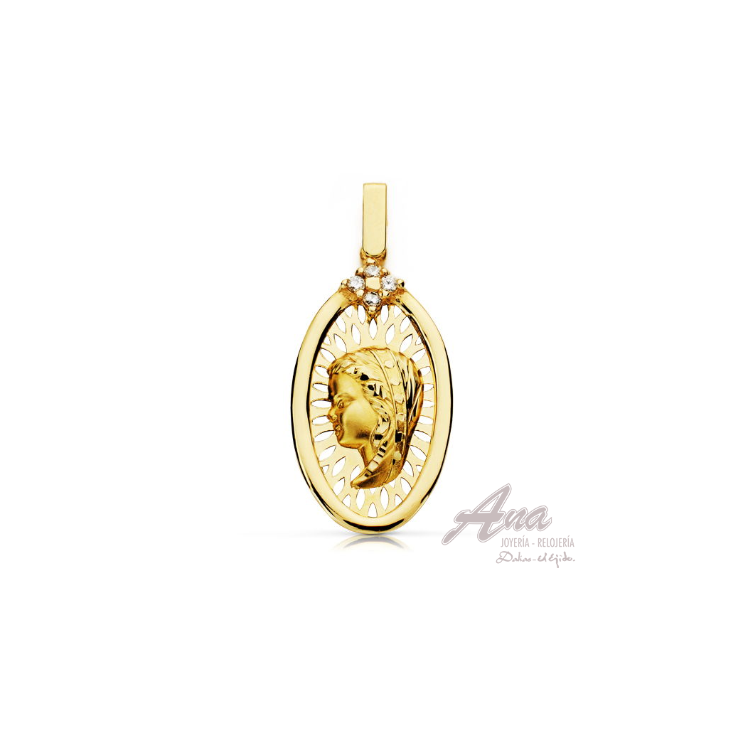 MEDALLA VIRGEN NIÑA 9KTES. 27X15 MM.