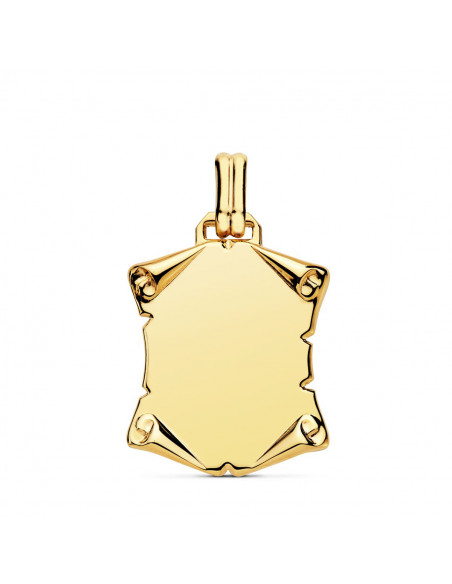 18K CHAPA PERGAMINO LISO BRILLO PAPIRO. 22X20 MM