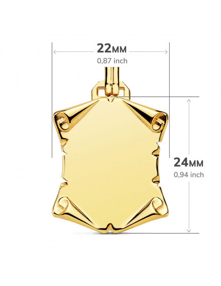 18K CHAPA PERGAMINO LISO BRILLO PAPIRO. 24X22 MM