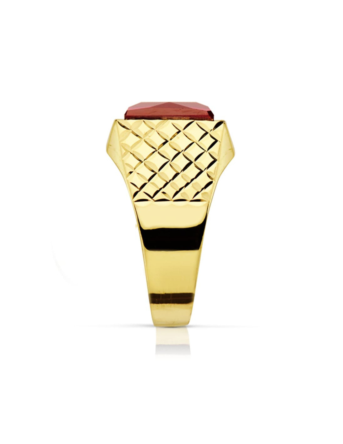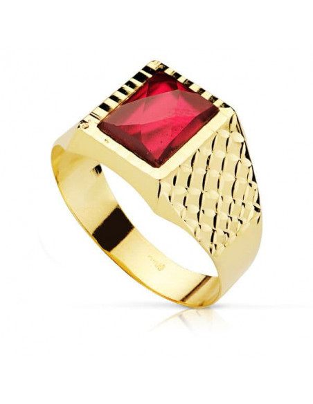 18K SELLO ORO AMARILLO CABALLERO PIEDRA RUBI SPINEL 10X8 MM
