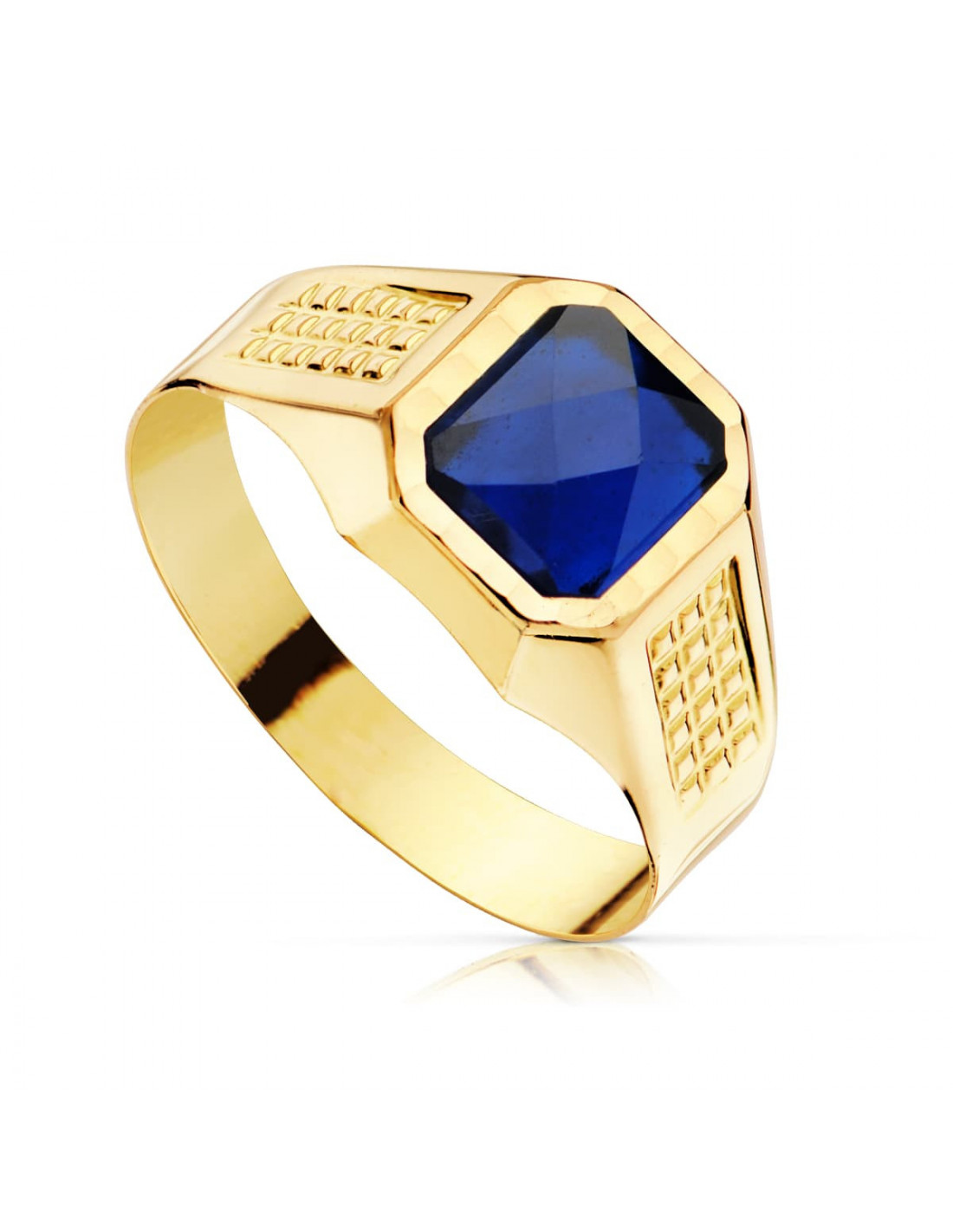 18K SELLO ORO AMARILLO CADETE HUECO PIEDRA ZAFIRO SPINEL 7X6 MM