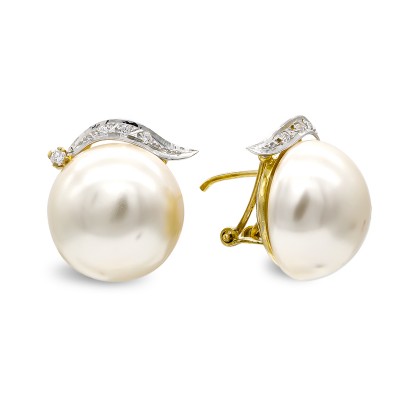 18K PENDIENTES ORO AMARILLO Y PERLA SINTETICA RAMA 16 MM