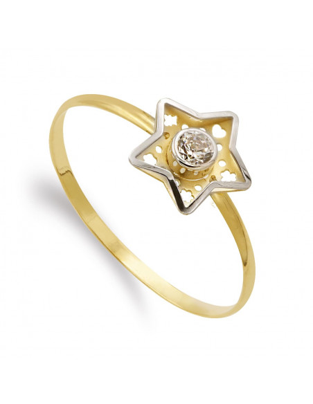 18K SORTIJA ORO BICOLOR ESTRELLA Y CIRCONITA 8 MM CUERPO 1 MM