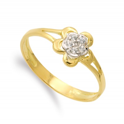 18K SORTIJA ORO BICOLOR CON FLOR Y CIRCONITAS 7 MM CUERPO 2 MM