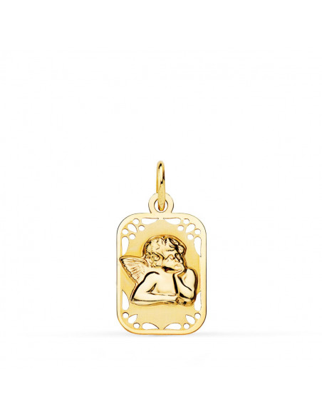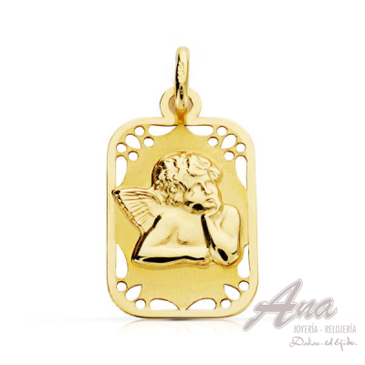 9K MEDALLA RECTANGULAR ANGELITO BURLON BRILLO Y MATE 19X11 MM